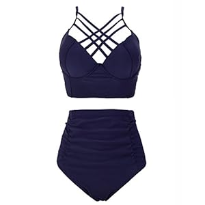 X-HERR Women Sexy Plus Size Strappy High Waisted Bikini Swimsuits Underwire 2 Pieces Bathing Suits