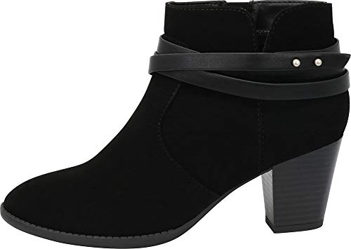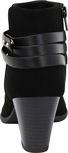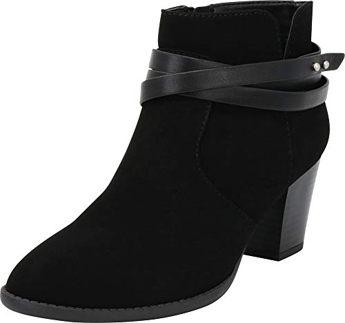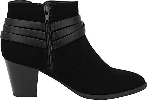 This Western-inspired ankle boot from Cambridge Select features a closed toe, triple wraparound strap with metallic closure, inner zip for easy on/off, and chunky, mid heel for all-day walkable comfort. Imported.
