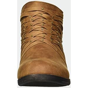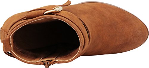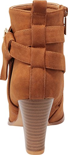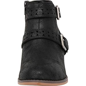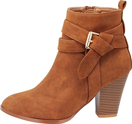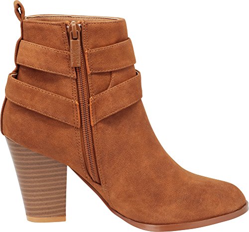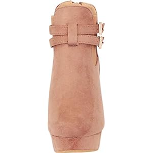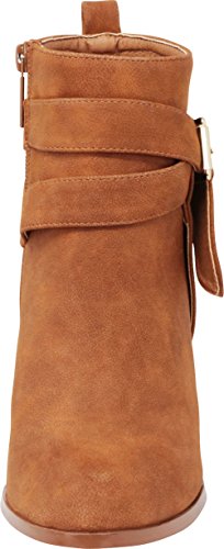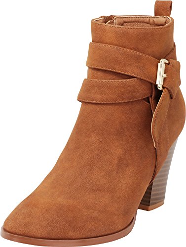 This ankle bootie from Cambridge Select features a closed, round toe, wraparound straps with buckle and belt-style knot detailing, and chunky, stacked heel for comfortable, all-day wear. Imported.