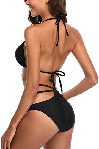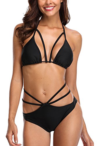 CharmLeaks Women’s Strappy Bikini Swimsuit Cut Out Swimwear Push Up Bikini Beachwear