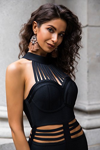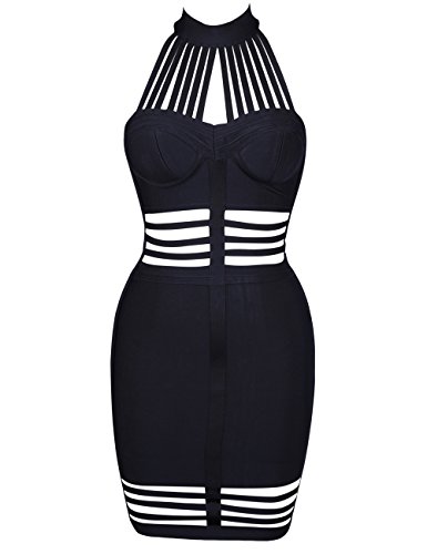 Attractive Design:The club bandage dress is crafted from our ever famous stretch bandage fabric that works with your curves to create your perfect hourglass shape.Features a delicate design to the bust that is echoed through the waist and the hem.The halter neck is flattering and the skirt is cut to sit slightly above the knees.