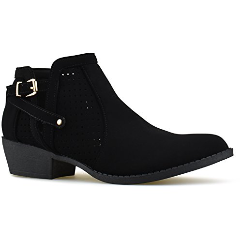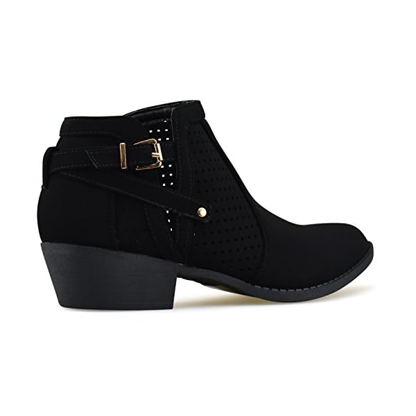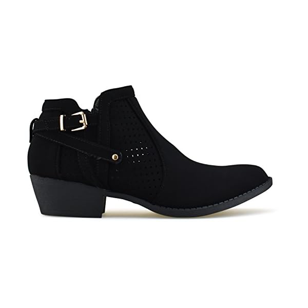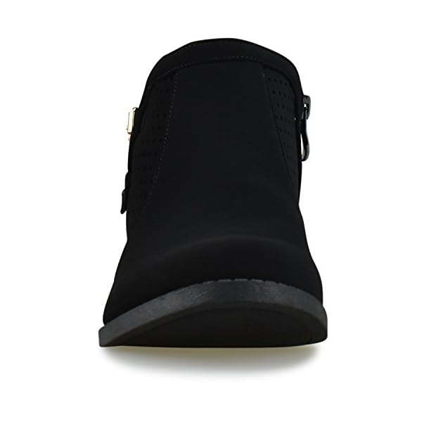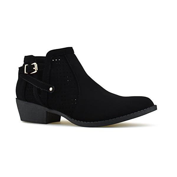 PERFECT FIT AND STYLE: Versatile, strappy buckle ankle boots have a simple, sleek upper made out of vegan suede and a low, stacked heel adds some inches to your look. Perfect for festivals and year round wear!