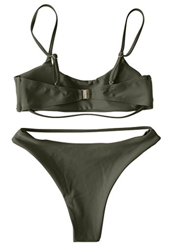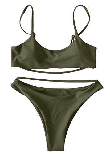 Cami crop tank sporty style bikini top features full coverage,scoop neck,Grip tape on top,Scoop neck,Cuout strappy,removeable push up padded,Brazilian high cut thong bikini bottom with cut out strappy on navel site¬seamless and double-layered fabric cover top and bottom