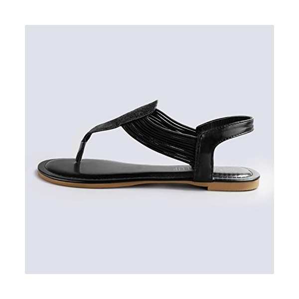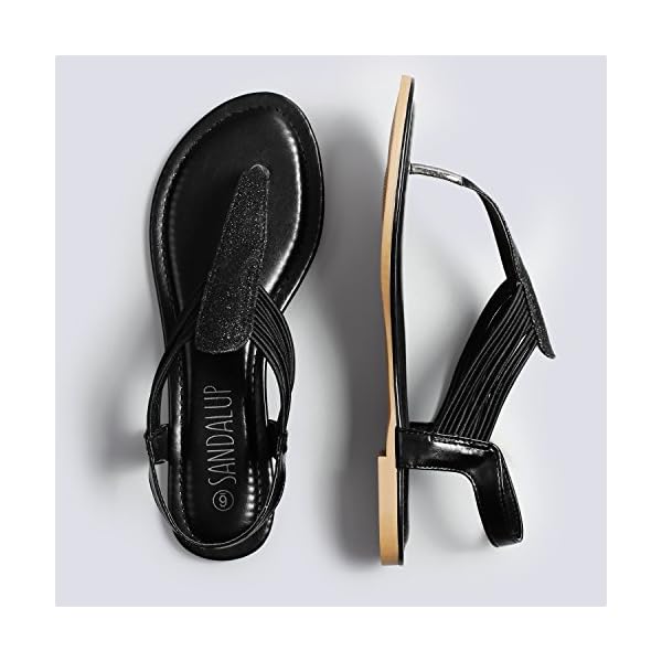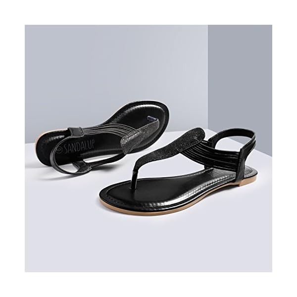 SANDALUPElastic Strappy sandals with a fancy sparking t strap thong sandal! Featuring elastic string straps construction with with distinguish thong upper, lightly padded insole, and adjustable flexible ankle strap with buckle closure.