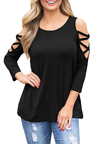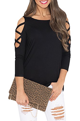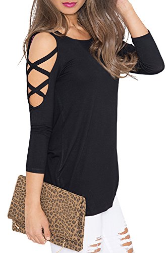Spadehill Women’s Sexy Criss Cross Cold Shoulder Long Sleeve Blouse Top