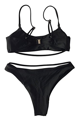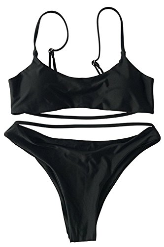 Spaghetti Strap bikini top features scoop neck,cut out strappy under the bust,removeable push up padded,Brazilian high cut thong bikini cheeky bottom with cut out strappy on waistline