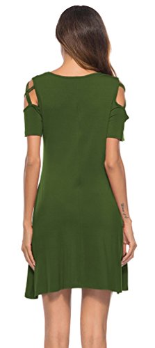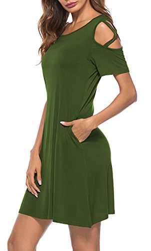 THANTH Womens Short Sleeve Cold Shoulder Dresses Pockets Strappy Casual T Shirt Dress
