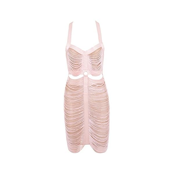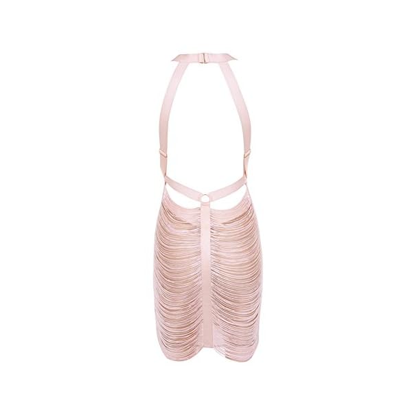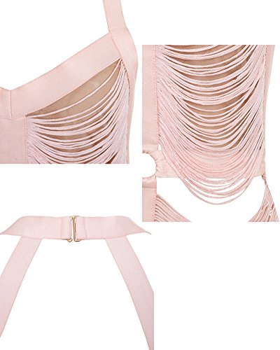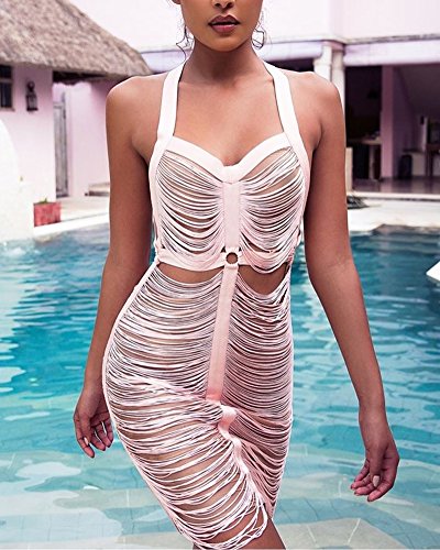 UONBOX Women’s Sexy Sheer Mesh See Through Low Open Back Fringed Strappy Tassel Bandage Dress Night Party