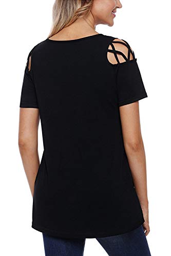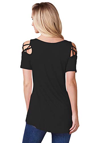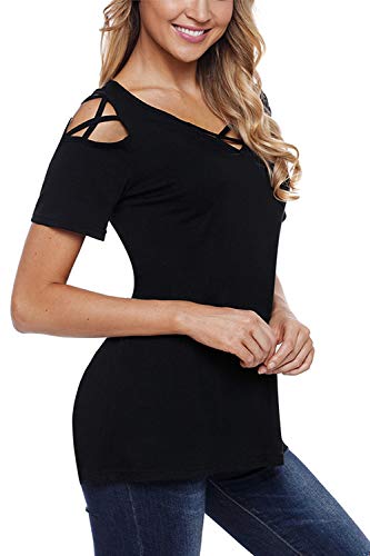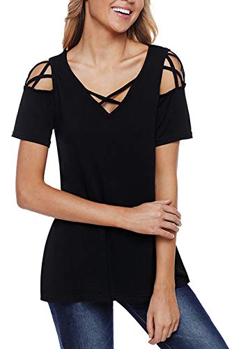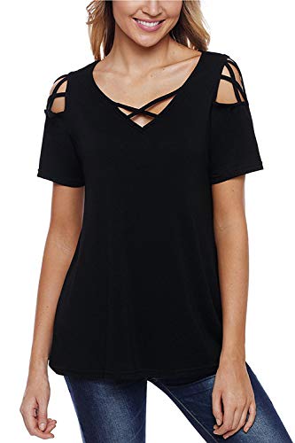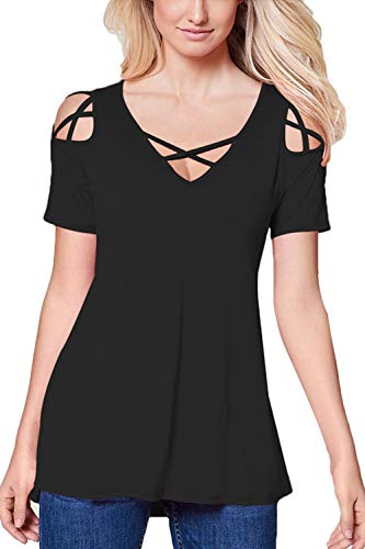 Feature: Casual Style, Criss Cross V Neck, Cold Shoulder, Short Sleeve, Loose Fit. Simple, Chic and Delightful. Pair with Jeans, Leggings, Shorts, Pants, Jackets, etc. Suitable for Daily Life, Office Work, Summer Vacation, etc. Great for Women and Juniors.