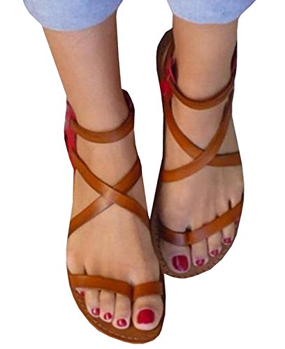 Syktkmx Womens Flat Thong Strappy Gladiator Clip Toe Cross Ankle Strap Roman Sandals