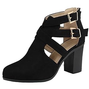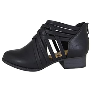 MVE Shoes Women Strappy Chunky Heel Cut Out Ankle Boots