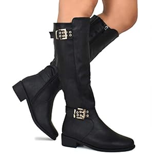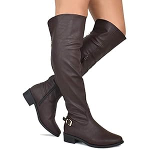 Premier Standard – Women’s Strappy Buckle Over Knee High Boots – Low Heel Sexy Zipper Walking Boots