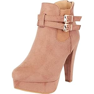 Cambridge Select Women’s Strappy Buckle Chunky Platform High Heel Ankle Bootie