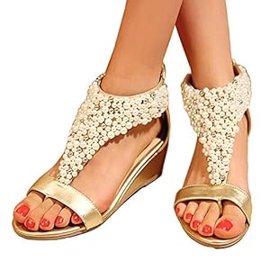 getmorebeauty Women’s Ankle Strappy Across Pearls Peep Toes Zipped Sandals