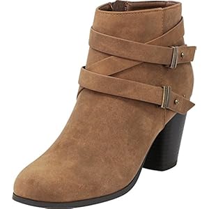 Cambridge Select Women’s Crisscross Strappy Chunky Stacked Block Heel Ankle Bootie