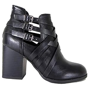 Forever Link Women’s Ankle Strappy Buckle Cut Out Low Chunky Heel Ankle Bootie